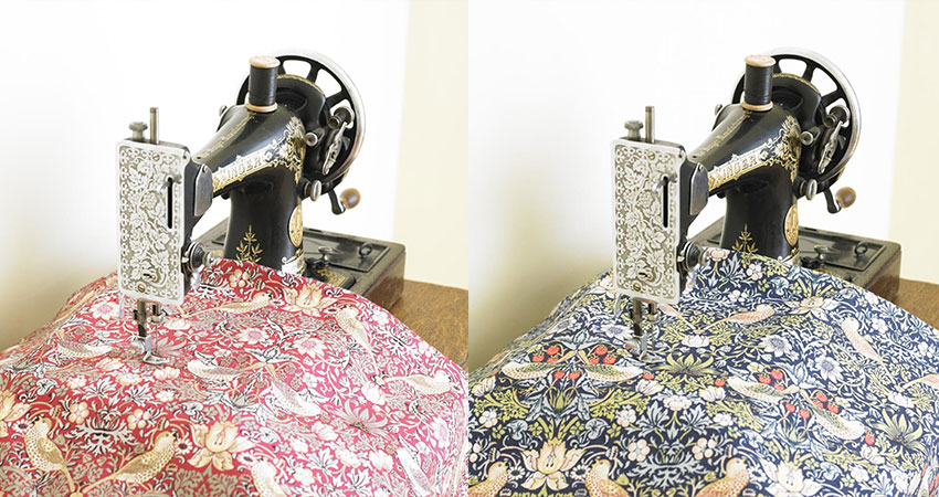Our latest design, our Strawberry Thief blue and red design has perfect tones in for this time of year. The deep blues with the pop of red in the strawberry is our favourite right now. The red is stunning too – the birds within the design really make you look – there’s such layers of detail within the design that we encourage you to keep looking at it until you see them all!