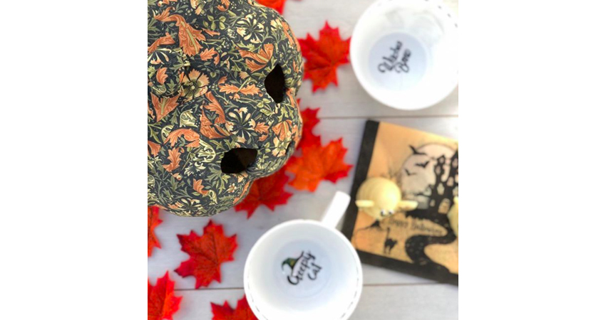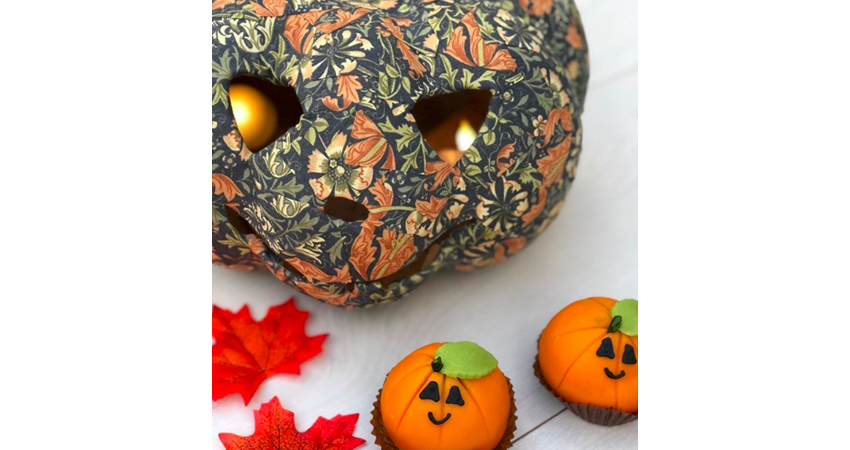 Our cute little pumpkin we crafted using our William Morris Compton 100% cotton fabric. Now, we could have chosen quite a few different fabrics, we think in particular Brother Rabbit Red, Eyebright and Strawberry Thief would also look fabulous. But Compton is so great in the Autumn in particular that we went for that design. Take a look through our entire collection to see the fabrics you could pick from!