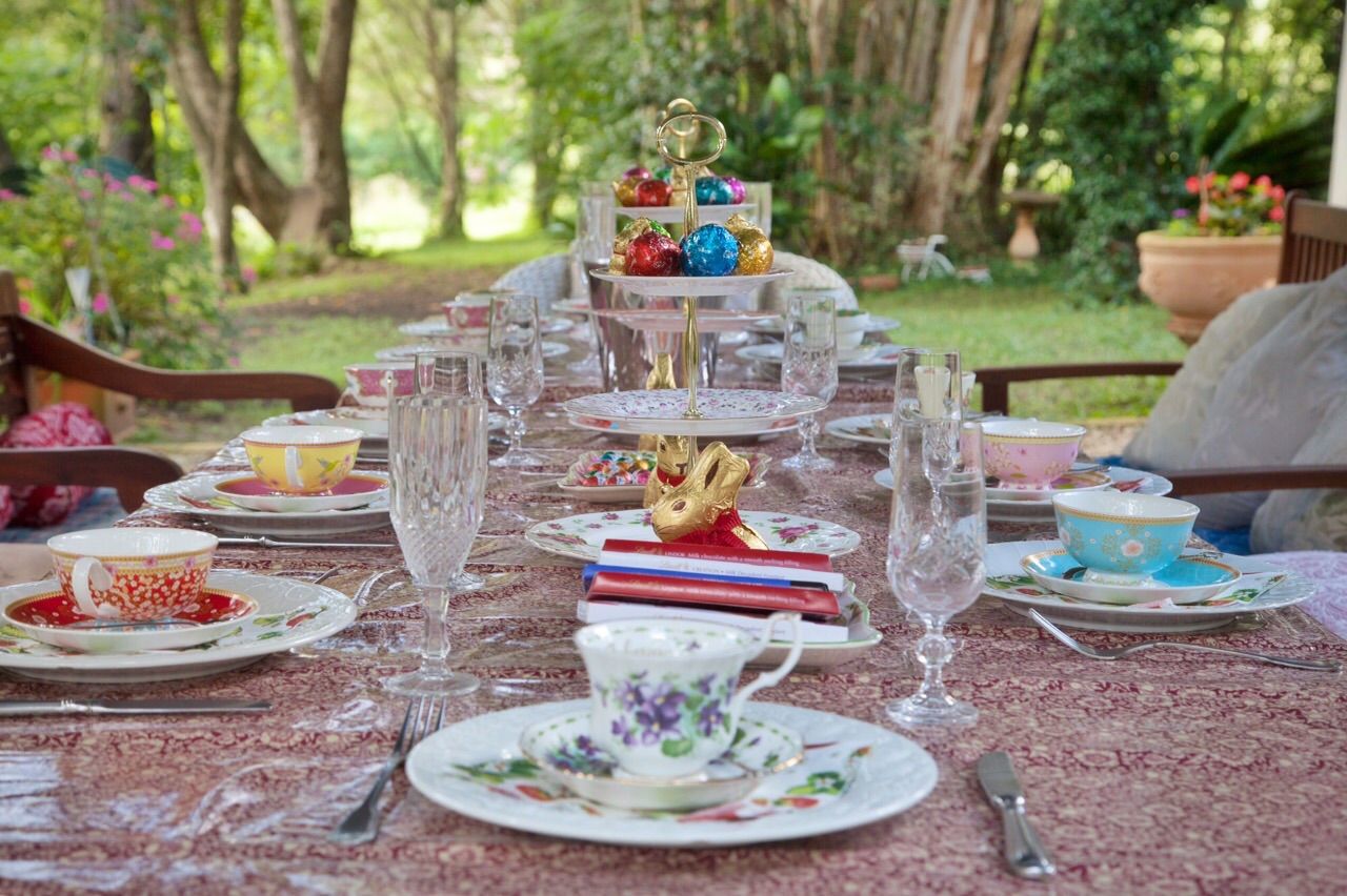 The table is all set for an Easter tea, it looks delightful.
