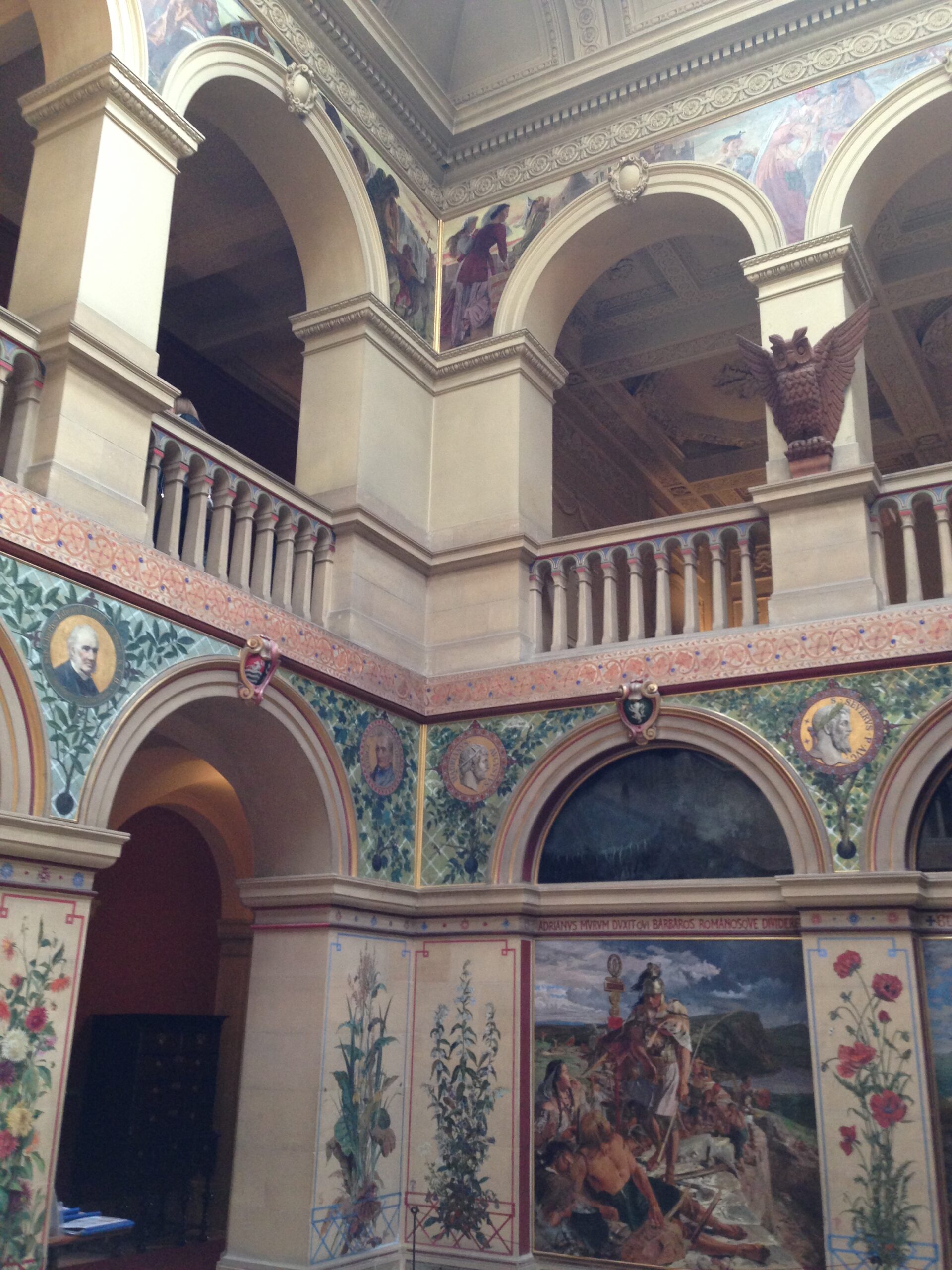 The Central Hall was originally an open courtyard, in the 1850’s the roof was added and the Pre-Raphaelite artist William Bell Scott created beautiful wall paintings which capture 2,000 years of local history.
