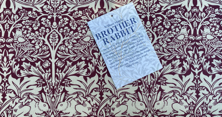 Brother Rabbit we have in both Red and Blue colour ways so that you can enjoy them in your favourite colour. First produced at Merton Abbey by Morris, it was inspired by a book Morris used to read to his daughters, Jenny and May. There was a character it was named after in, “Uncle Remus, His song and His Sayings” (1881) by J.C. Harris. It’s also known as Brer Rabbit.