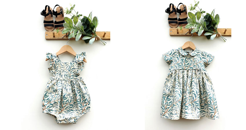 Ellie sent us these beautiful photos of adorable children’s clothes, using our William Morris Willow Bough Green fabric. She creates these for her business Ellie+Bella, she is planning to do some for Autumn Winter so keep an eye out for those too! Find her Instagram here.